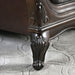 Turn your bedroom into a high class bed chamber with this curvaceous bedroom set. The curling wood trim on the head and foot boards crescendo to a fluted seashell motif crown. The deep tufting add some comfort but in a luxurious almost decadent sense that elevate the feeling of extravagance in the room. The matching case goods offer the same refinement, with antique drawer pulls, felt lined top drawers, and all rest atop claw and ball feet for a lifted look and traditional design.
