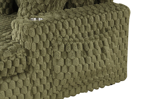 FOA EastContemporary Olive Green Fabric, Foam, Engineered Wood, Others Soft Faux Fur Track Arm w/ Stainless Steel Cup Holders 2 Side Pockets for Storage C...