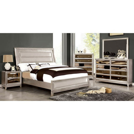AMINA Server, 59 7/8"W X 18 1/2"D X 34 1/4"H, 176lbs. This dining collection will be the focal point of any home with its eye-catching silver finis...
