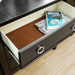 Fall asleep better than ever on this handsomely crafted bedroom set. The rich, wire-brushed black finish effortlessly fits into any sleeping environment while paired with minimalistic designs. Its wood paneled headboard and footboard makes subtle statements and create a luxurious appeal. Case goods showcase small ring drawer pulls for charismatic charm as top drawers come lined with felt for your more delicate items.