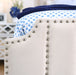 Bring a modern and up-to-date vibe to your bedroom setting with the sophisticated design of this contemporary bed. The sleek flannelette upholstery adds a soft cushion to the tall headboard and footboard, which feature a uniquely tiered silhouette to enhance the visual appeal. Sophisticated vertical tufts line the length of the upholstery to create a ridged look sure to match any aesthetic.