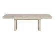 Table, Chairs and Bench, Modern Farmhouse, Rubberwood, Engineered Wood, Foam, Fabric, Mindi Veneer, Natural, Table Extendable w/ Leaf, Plinth Base, Felt-Lined Top Drawer, Black Iron Handle, Metal Side Glide, Soft-Closing Door in Server