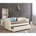 This contemporary day bed with hidden trundle is great for an office or guest room. Upholstered in durable leatherette.