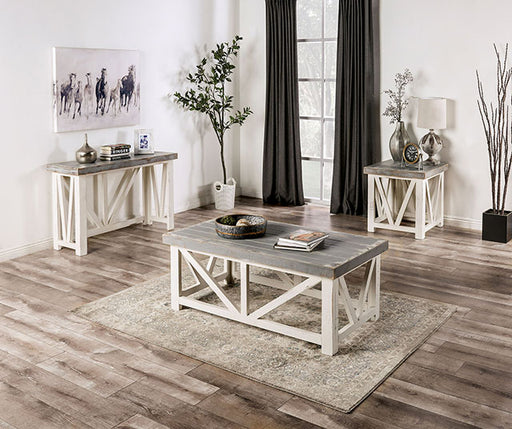 FOA EastJoliet Antique White End Table, 24"L X 22"W X 24"H, 37.4lbs. Introduce a bit of rural charm to your home. The carved Remington styled legs are a cl...