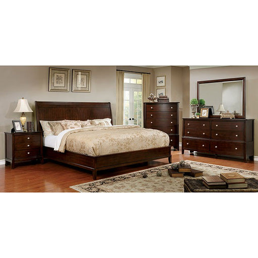 FOA EastFinished in dark walnut, this classic bedroom set has a graceful sleigh bed. The matching night stand, dresser and chest are accented with antique ...