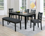 It's the black and dark gray dining ensemble designed with esoteric flair for the alternative palate. A dynamic new take on the traditional bench design, it's a visibly solid construction of daring geometry all resolved by the relief of the plushly upholstered seats. Uniquely, it serves an almost dual-identity - it may appear discreet in a dark room, yet bold in the light.