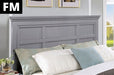 Take serenity home with this complete bedroom set from the Castile collection. Topped with beautiful crown molding details, the bold panel headboard and tall footboard cradles enough slats in between them for you to easily lay your mattress without the need for a separate foundation. On the sides are large underbed drawers lined with felt. Finally, the gray finish and the nickel cup pulls and round knobs complement each other well in tone and hue.