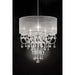 Rigel Silver 31 1/2"H Ceiling Lamp, 26"L X 26"W X 31 1/2"H, 32lbs. This ceiling lamp dazzles with its curving frame and hanging crystal. Its shade is gentle and softens the lighting to create a dreamy mood setter. Features: Evangelia Ceiling Lamp Iron 1PC/CTN