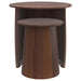 Add functional versatility and sculptural appeal to your living space with this two-piece nesting table set. Crafted entirely from solid mango wood, each round table is designed to tuck neatly beneath the other, saving space while offering adaptable surface areas. The dark brown finish accentuates the wood’s natural grain, resulting in a warm, sophisticated presence. Perfect as side tables or accent pieces, they effortlessly combine form and function to enrich your décor.