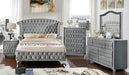 Comforting cushioned velvet-like fabric encompasses this chic bedroom set. Admire the glamorous wingback headboard as glimmering acrylic button tufts and framing nailhead trim dazzles. Run your hands over the soothing night stand and easily store essentials in its storage space. Cabriolet feet add a finishing polish as they provide unwavering support to this elegant bedroom set.