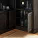 Voltaire Gray Curio Cabinet, 39"L X 41 1/2"W X 80"H, 253lbs. Maximize your dining or living room area while utilizing vertical and corner space! This standing bar table provides an additional space to serve guests drinks immediately. Features: Curio Set 3mm Glass Shelves Standing Bar Table